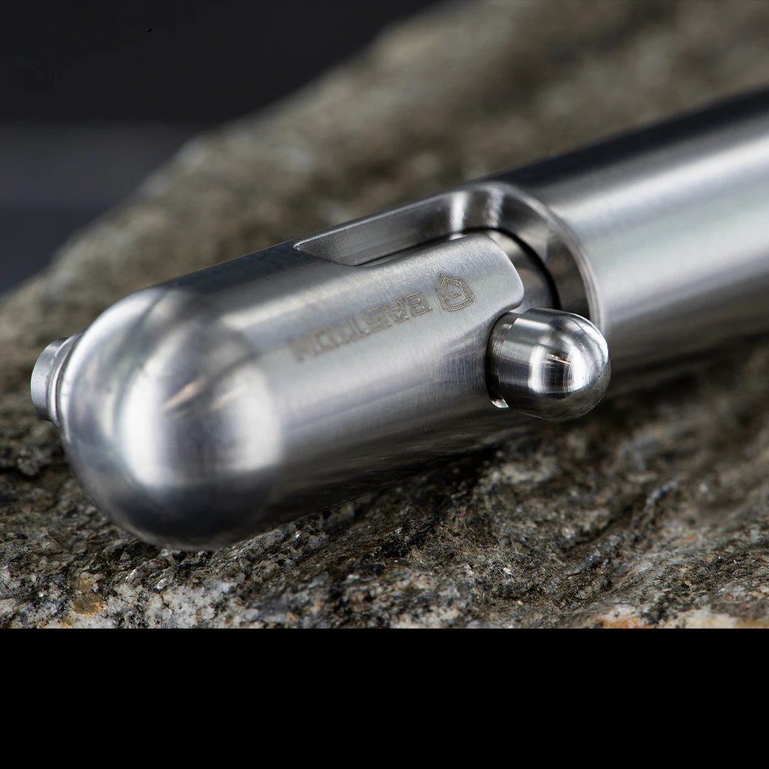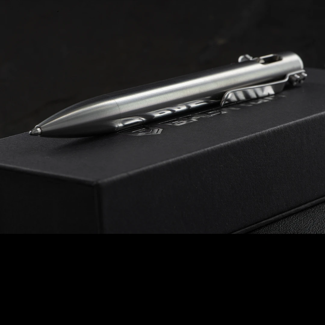 This is a stylish conversation starter and a unique addition to any everyday carry (EDC) collection. It benefits from a very solid Titanium construction with a bolt-action open/close mechanism which is very much “unputdownable”!.