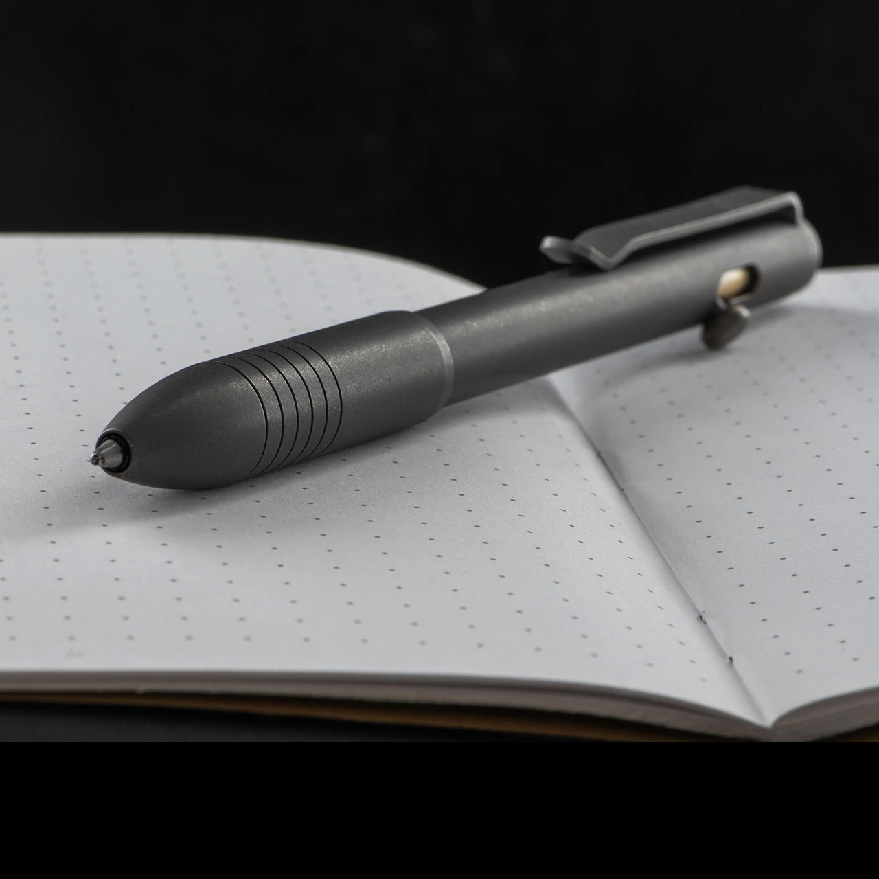 The BIGiDESIGN Bolt Action Pen is a high quality, CNC machined EDC pen. The stonewashed Titanium body is extremely tough and looks great but the magic of how it operates is the bolt action opening system and the pressurised refill allowing you to write upside down, in the wet and even in space. Perfect for your everyday carry.