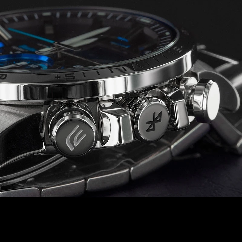 Introducing the ECB-800 Series of EDIFICE metal chronograph models with advanced features and functions that allow linking with your smartphone. These new models provide true chronograph capabilities and were developed based on feedback from members of a professional automotive racing team. In addition to Phone Linking, which ensures accurate timekeeping and simplified operation, these models also come with advanced stopwatch functions.