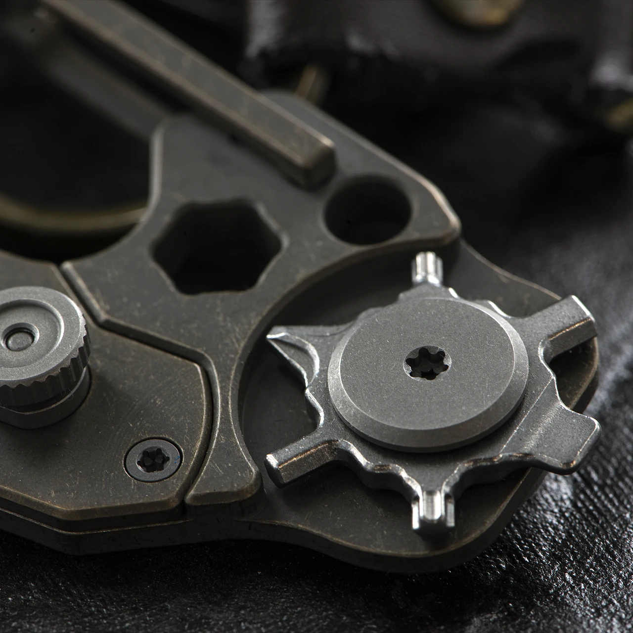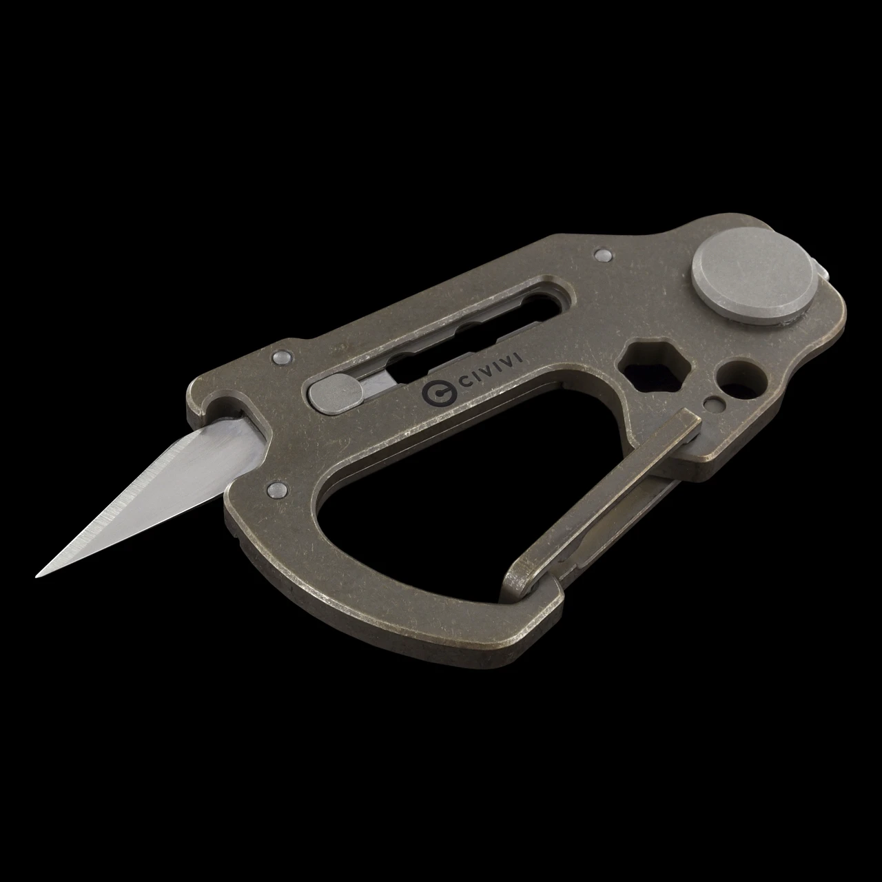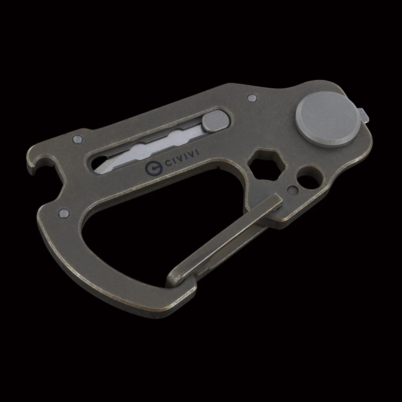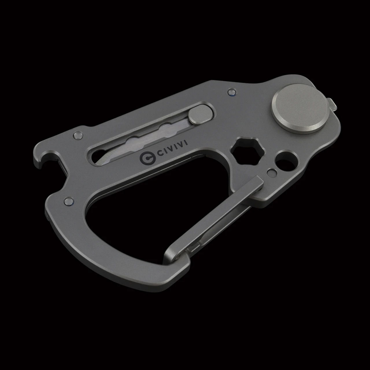 The Civivi Polymorph is a bottle opener and hex bit driver with a 9Cr18MoV scalpel blade attached all encased in an anodised titanium body. The spring loaded carabiner feature means you can hang it from anything so it’s always close to hand when you need it. Â