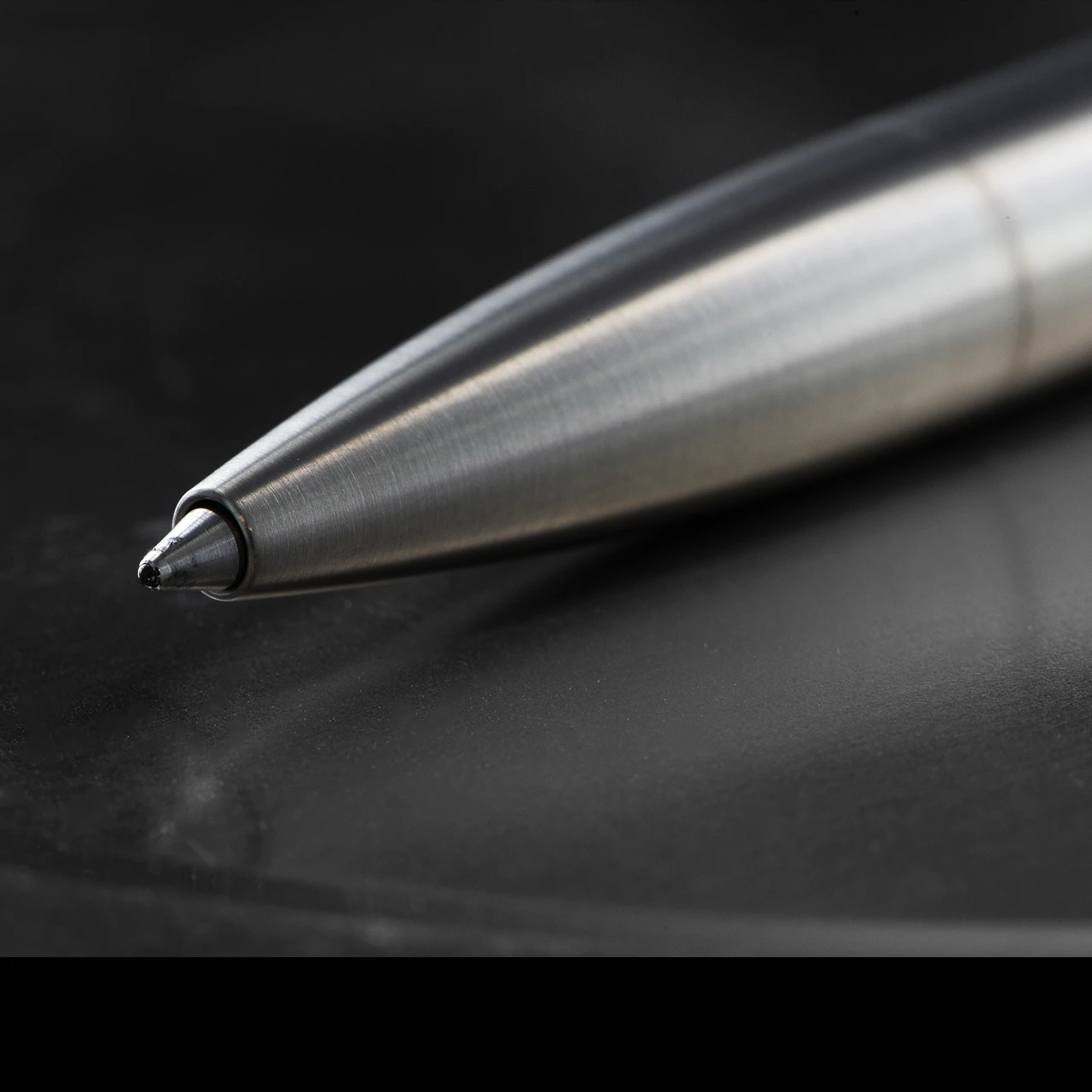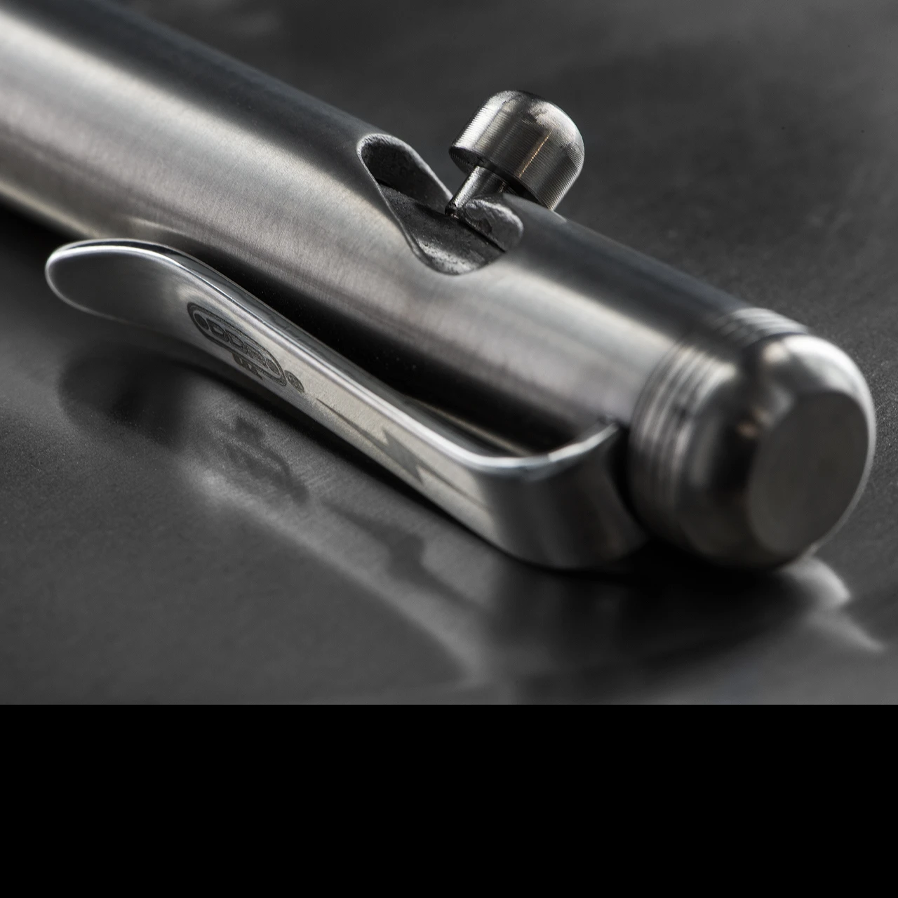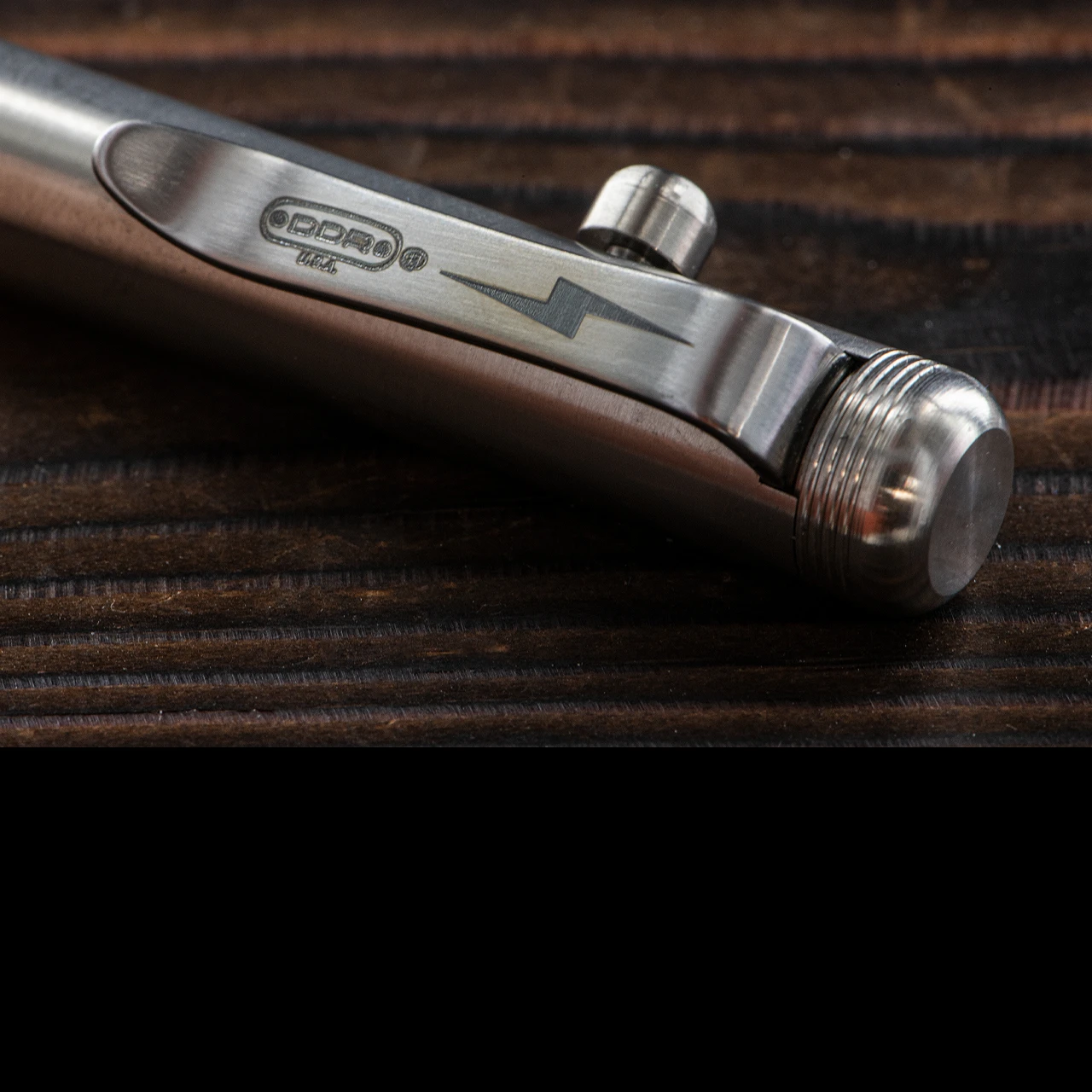 Darrel Ralph was inspired to “make a great writing instrument with a non-threatening appearance to blend into almost any working environment.” The Thunderbolt is certainly that but with a generous sprinkling of stardust added. It is machined from Titanium with breath taking precision.
