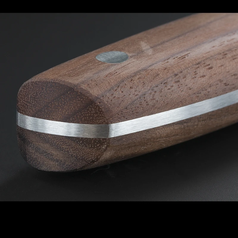 Due Cigni uses German 4116 X50CrMoV15 stainless steel which will retain an edge very nicely. The handle is Walnut wood which has a lovely feel and attractive grain.