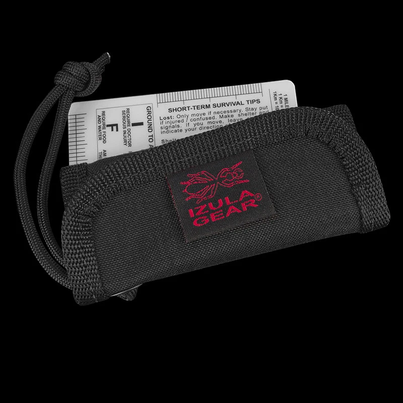The wallet has a one inch webbing strap on the back for attaching it to other gear or a belt, and a paracord lanyard.
