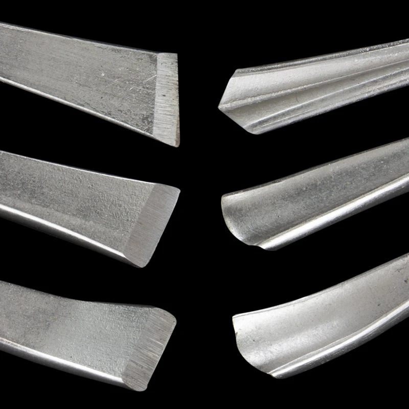 There are six tools supplied so that you can select the appropriate tool for the type of cut required. There’s two straight chisels, two curved chisels, a V-gouge and a skew chisel.