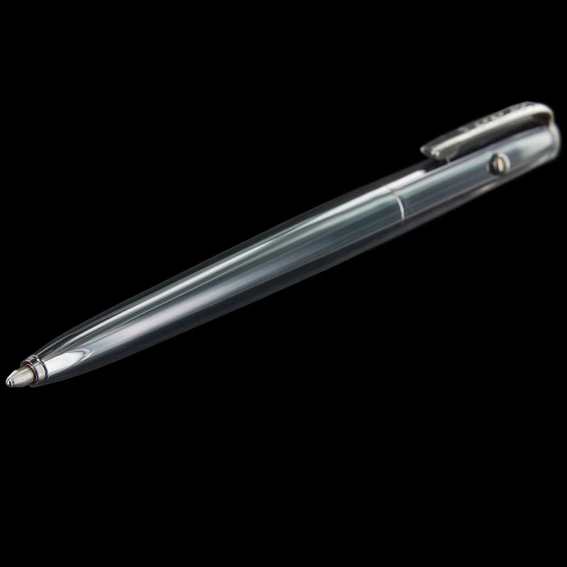 All Astronaut Pens are proudly produced in the USA! Each is made of solid brass with hard chrome plating, giving it a solid feel in your hand as you write. They also feature a unique clicking mechanism that extends the point via the button on the top, with a release button on the side to retract it. This side button has a substantial sound & feel to it, helping to ensure that you will always remember to retract the point before sliding the pen back into your pocket.