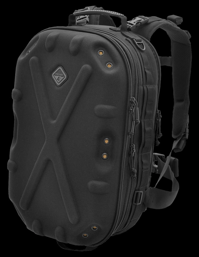 The striking aesthetics of the Hazard 4 Pillbox 29.5L project an image of the owner at the leading edge of technology. The compartments will fit a laptop, tablet, pro camera systems, drones like Mavic Pro, accessories like card-readers, and personal items like snacks, rain shell, or first aid kits that are often not allotted on most packs. The molded back-pad is abrasion resistant while conforming to the spine and ventilating sweat.