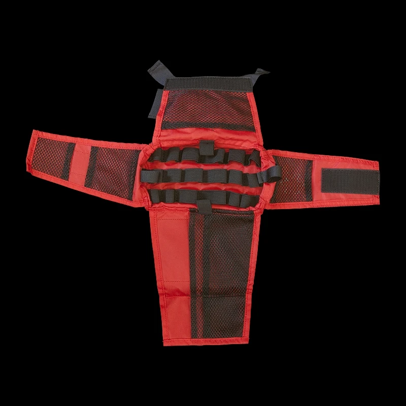 The Insert opens to the sides, providing instant access to the contents segregated at users discretion. Segments of the insert can be easily closed with velcro and open with deliberately placed opening loops. On opening the rescuer has access to the entirity of the med kit, without the necessity of additional opening or shifting the components. The Insert is red, which together with reflective elements (Paramedic cross and carry handle) on the flap aid in quick finding the Insert – vital at low light or turmoil, etc. of the rescue mission.