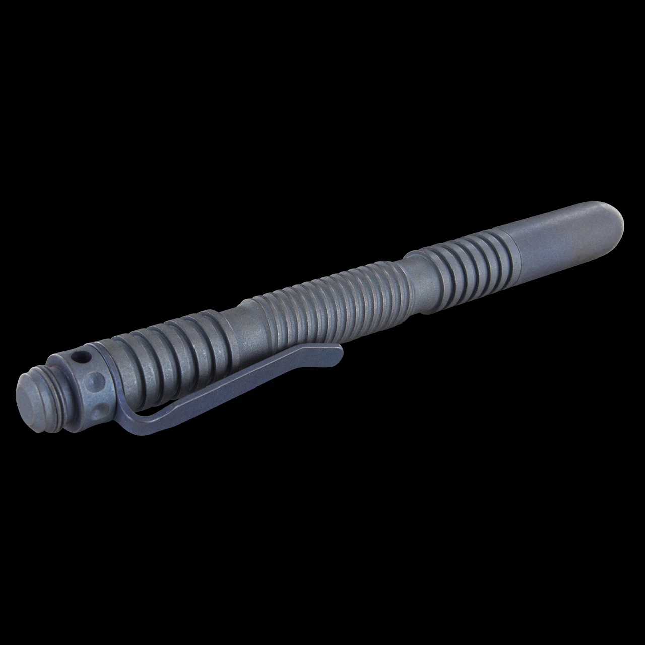 This version features a matt, “covert” blue anodised, Titanium body with a spiral design and pocket clip attached. The cap screws on and off and can be screwed onto the non-writing end so it will not be lost. A great pen needs a great refill so every Hinderer pen includes a Fisher Space Pen refill allowing you write upside down, in the wet and on your next trip to space!