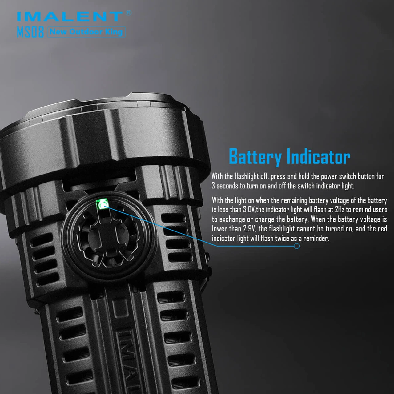 The IMALENT MS08 is a rechargeable LED flashlight with a compact, E.D.C. size that blasts out a 34,000 lumen beam with a maximum beam distance of 738 meters. It is THE most powerful Every Day Carry flashlight ever!