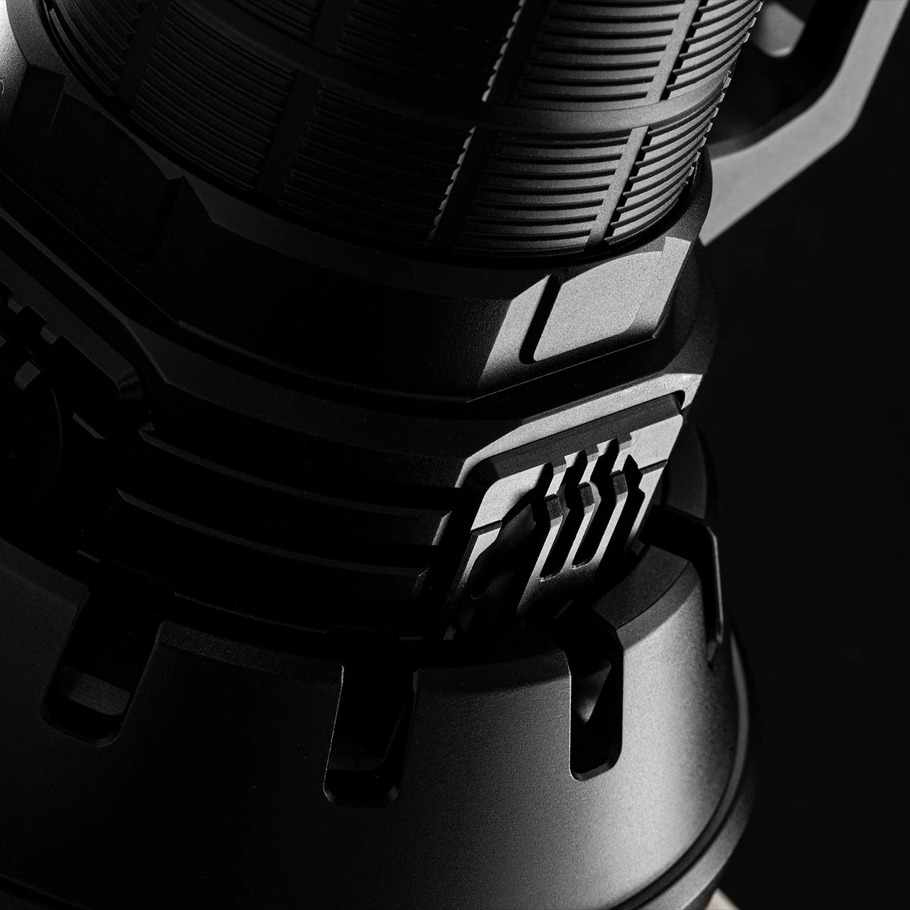 The Imalent SR16 is a can-sized powerful flashlight that uses 16 American CREE XHP50.3 HI LEDs to generate up to 55,000 lumens. Powered by its built-in Li-Ion battery pack consisting of four 21700-type cells. As a result, the beam produced by this torch can be seen from 1,715-meters away.