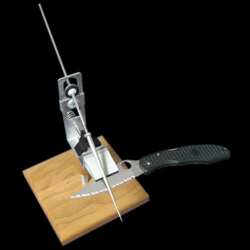 The KME tapered diamond rods for serrated blades screw onto the guide rods included in the KME Knife Sharpening System. Then all you have to do is mount your blade in the knife sharpening jig and touch up all the serration grooves.