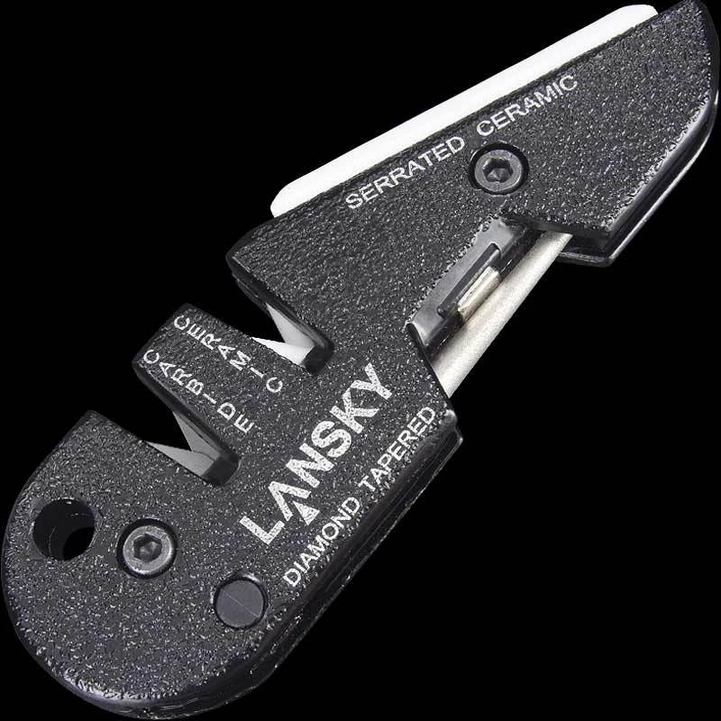 The Lansky Blademedic Knife Sharpener is the first responder for field repairs on all types of knife blades. It’s like having an entire sharpening kit right in your pocket – able to tackle regular or serrated blades, gut hooks, hunting, fishing, – just about any knife using one or all of the following elements: