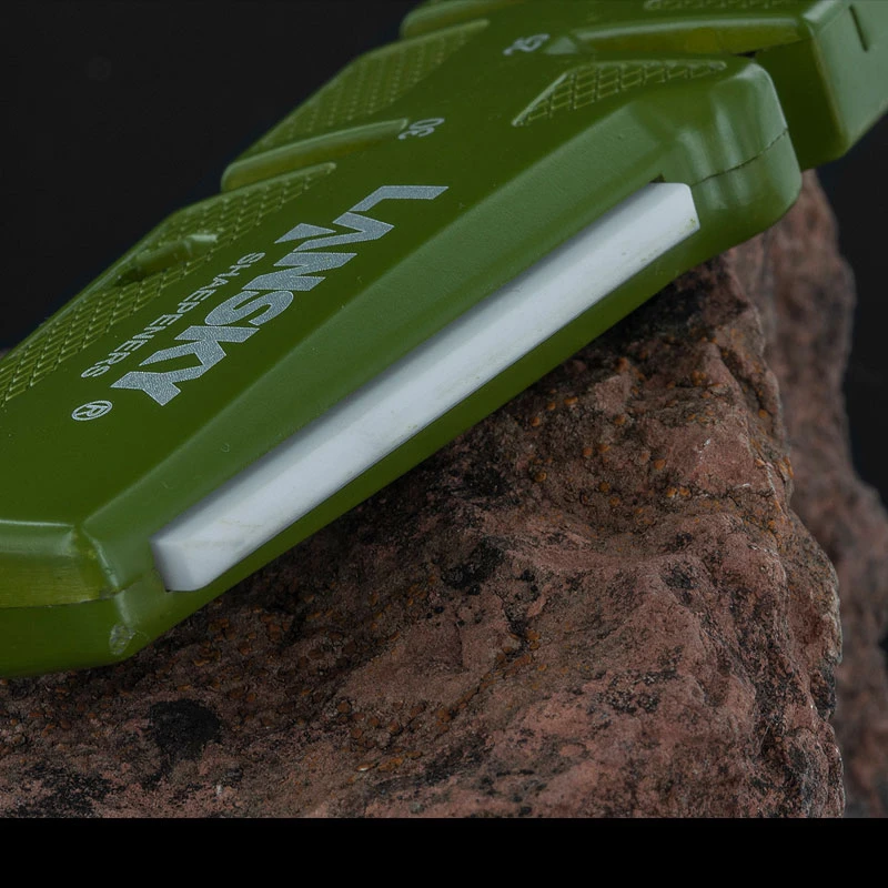 The Lansky D-Sharp pocket sharpener features four sharpening angles (17, 20, 25 and 30) in 600 grit diamond. It also has a fine 800 grit ceramic benchstone that can be used for polishing straight or serrated blades. Perfect as a Lansky System accessory, or as a stand-alone sharpening solution.