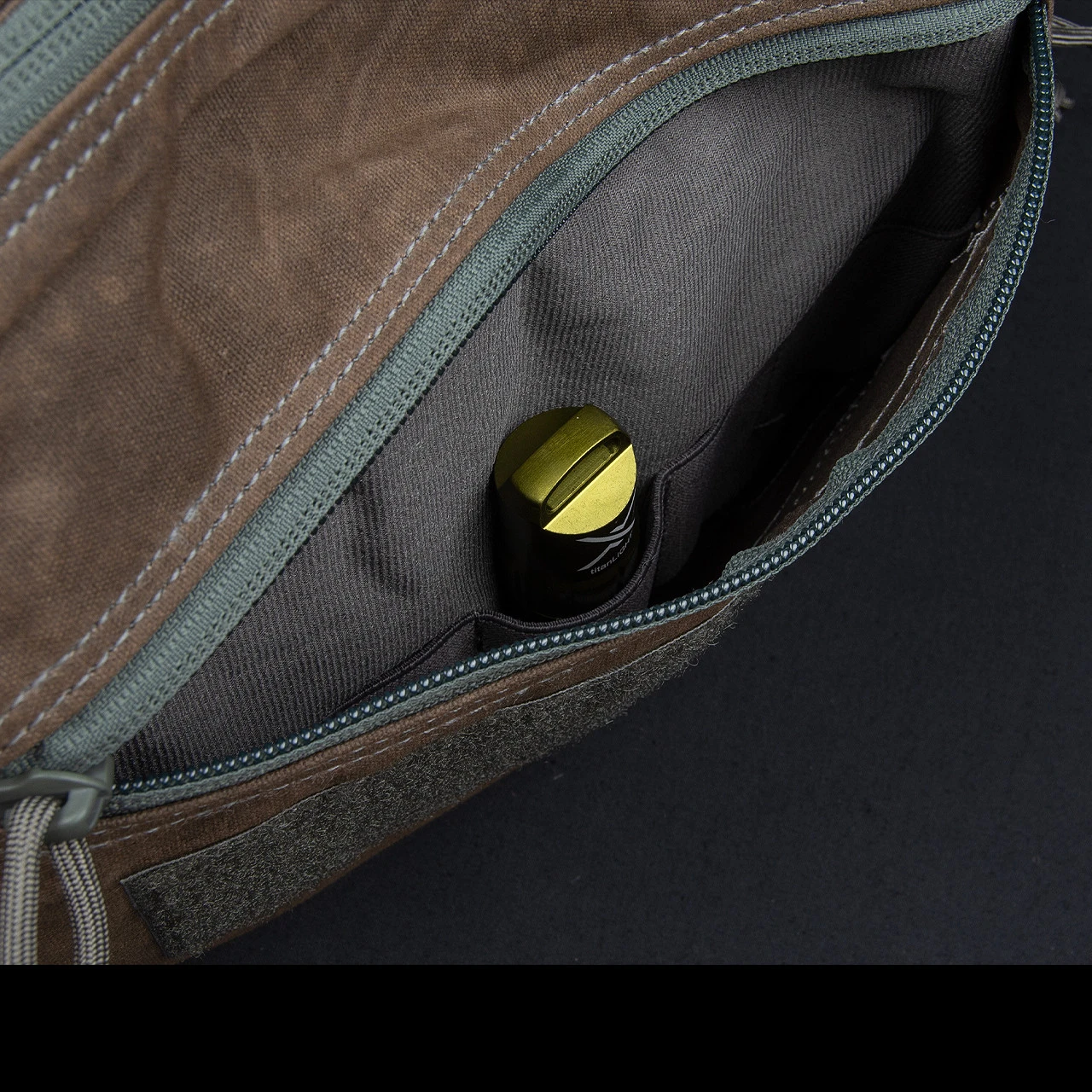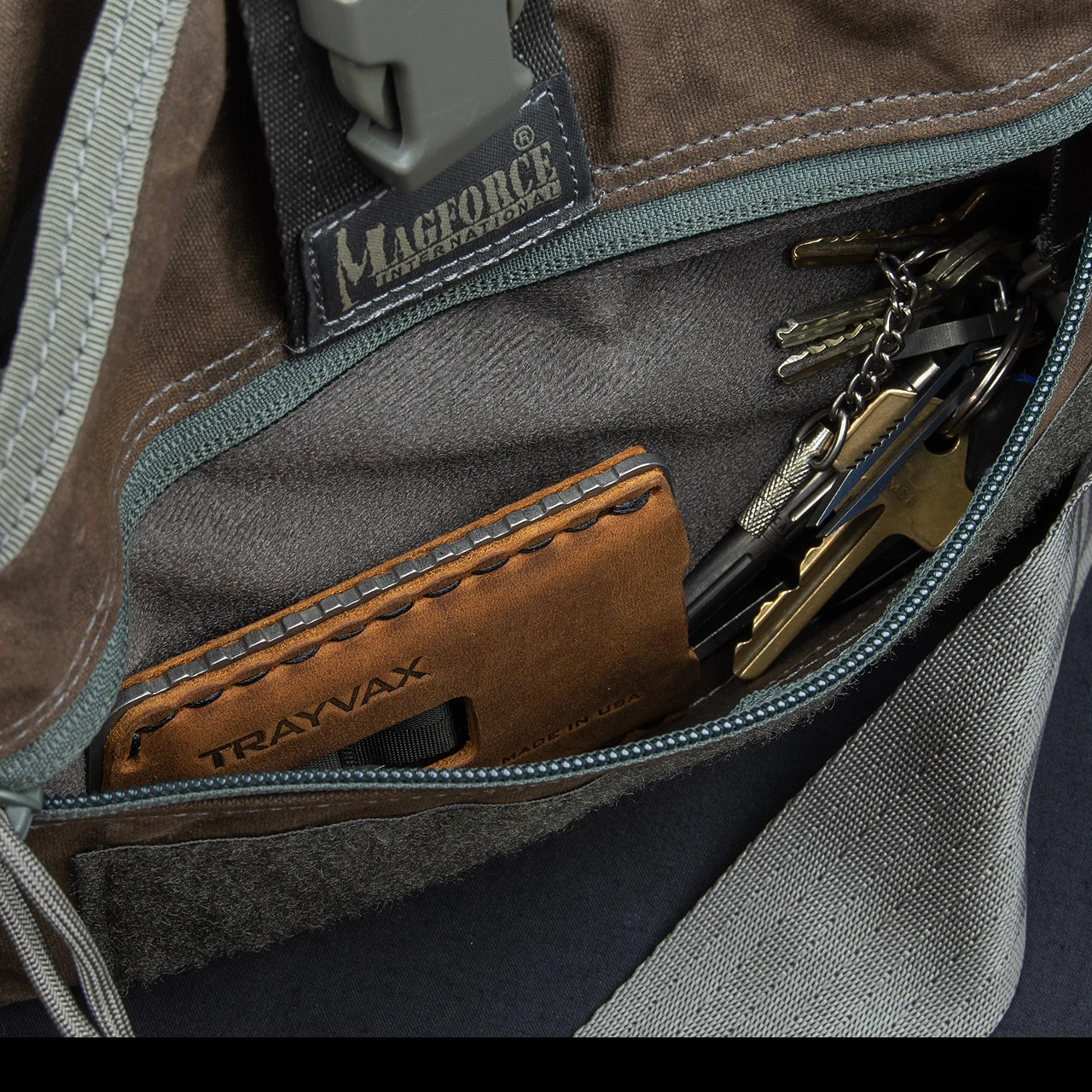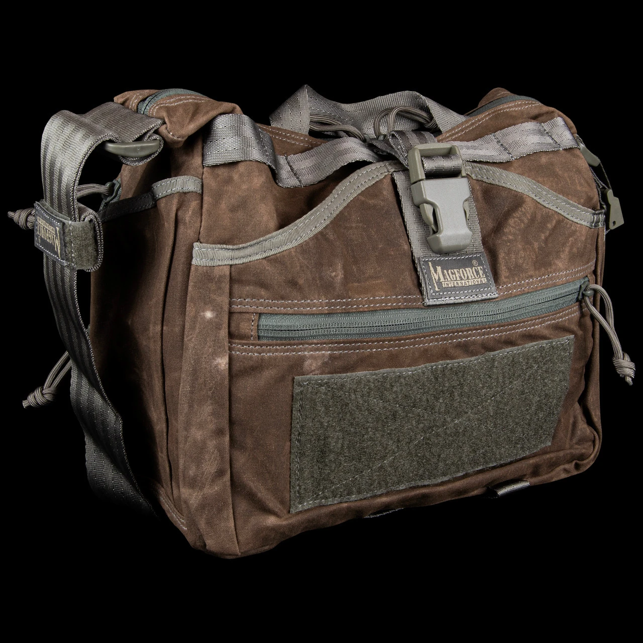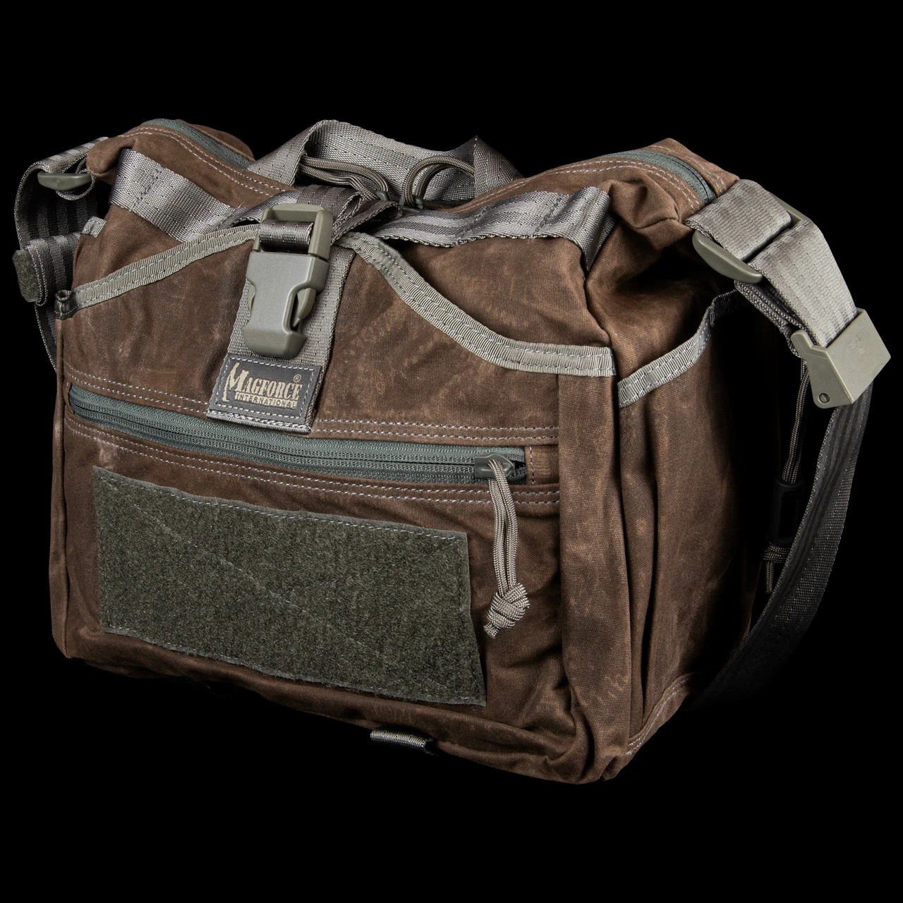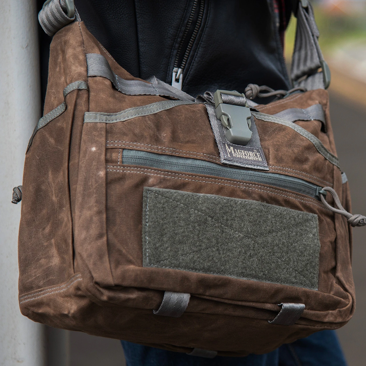 The Magforce Gemini Sling Bag is right at home in the hustle and bustle of the city and equally in the “get down and dirty” trails of the outdoors! This brown Waxed Cotton Canvas version is not only incredibly tough and water resistant but looks pretty damn cool too!