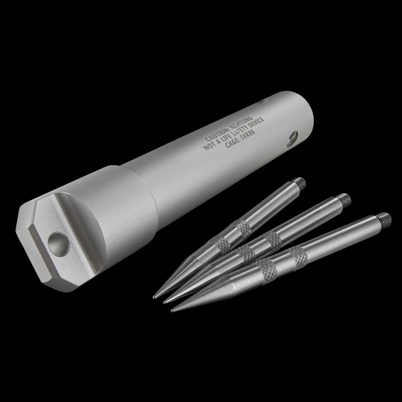 Built to endure through serious field use, the Grappling Hooks feature T6061 aluminum capsules and stainless steel spikes. For safe and secure transportation, the spikes unscrew and fit easily into the O-ring sealed storage compartment. Once the hook is assembled and you run 550 or smaller cord through the attachment point, fling it up into a tree to catch a dangerous widowmaker, pull hard to reach bags down from the top shelf, or hang up Christmas decorations by stringing lights through your cord.