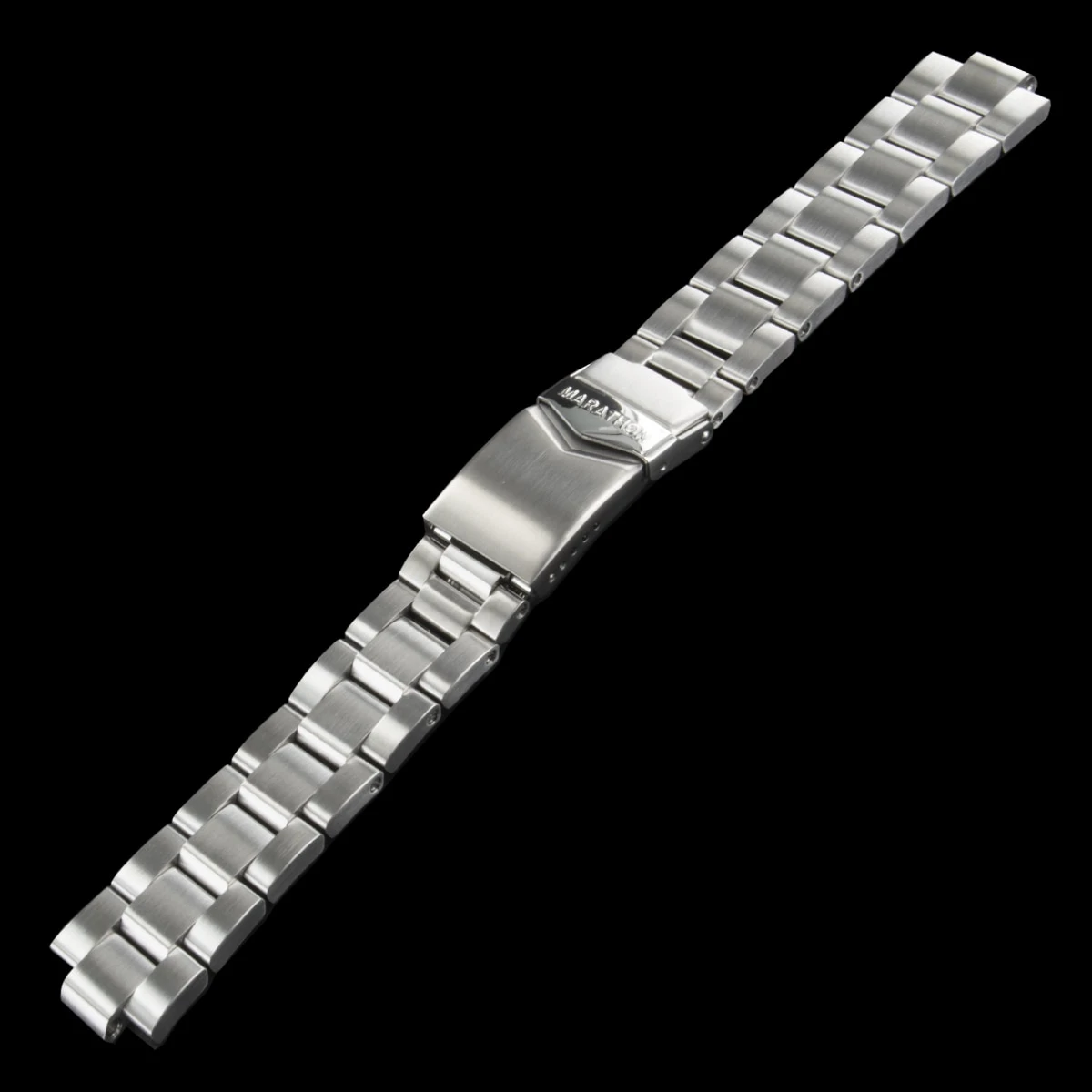 This elegant Marathon Watch stainless steel bracelet desinged for the Marathon watches with an 18mm pin gap. It’s made using high quality 316L stainless steel in a fine satin finish and contains a total of 14 solid links.