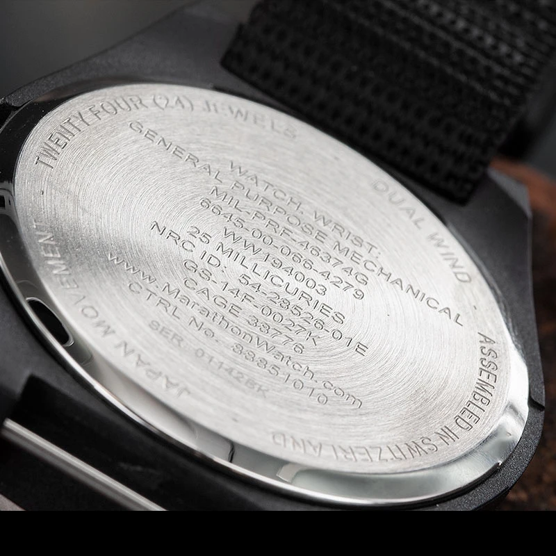 Introducing the improved Marathon General Purpose Mechanical watch featuring a dual winding movement, scratch resistant sapphire crystal, and improved water resistance. Designed to be used in the field by infantry or other military personnel and built to the strict military standards of MIL-PRF-46374G, the GPM is just as liked by a civilian as it is by a personnel uniform. The GPM is a true all purpose watch that will be your reliable companion for years.