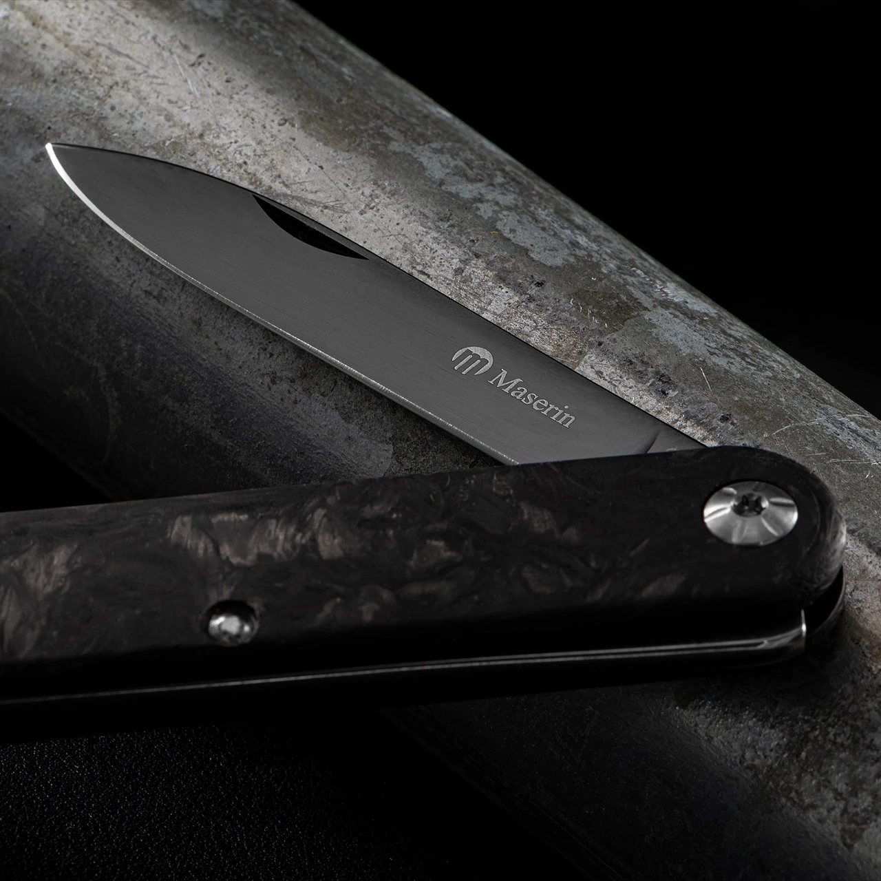 The Maserin 195 AlTiN is a slim, extremely elegant folding pocket knife, with a pen blade and a serrated blade.