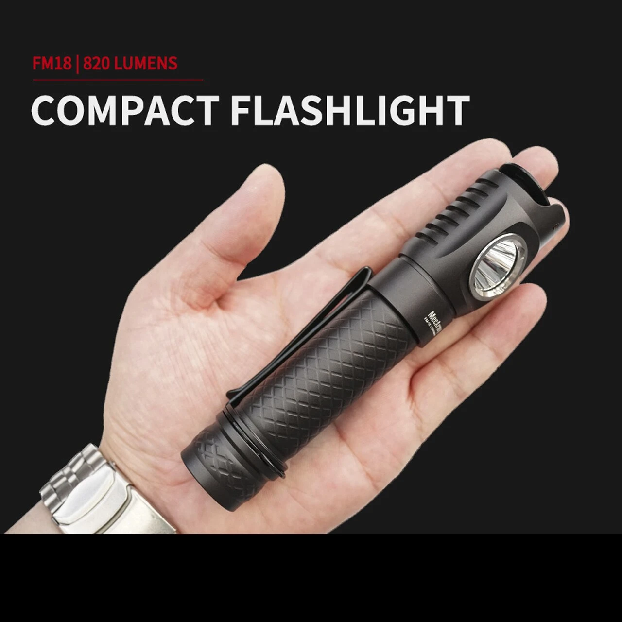 The Mecarmy FM series lights are equipped with CREE XPL-HI LEDs delivering high lumen levels and constructed from aero grade HAIII aluminium alloy. The MecArmy FM18 blasts out 820 lumens in a standing out the front design. It features a pocket clip and magnetic tail cap making carry and work easier and more convenient. Charging is easy on the go, thanks to the built-in standard Micro USB charging port with only a cable on any USB power devices. FM18 is powered by 18650 Li-ion battery.