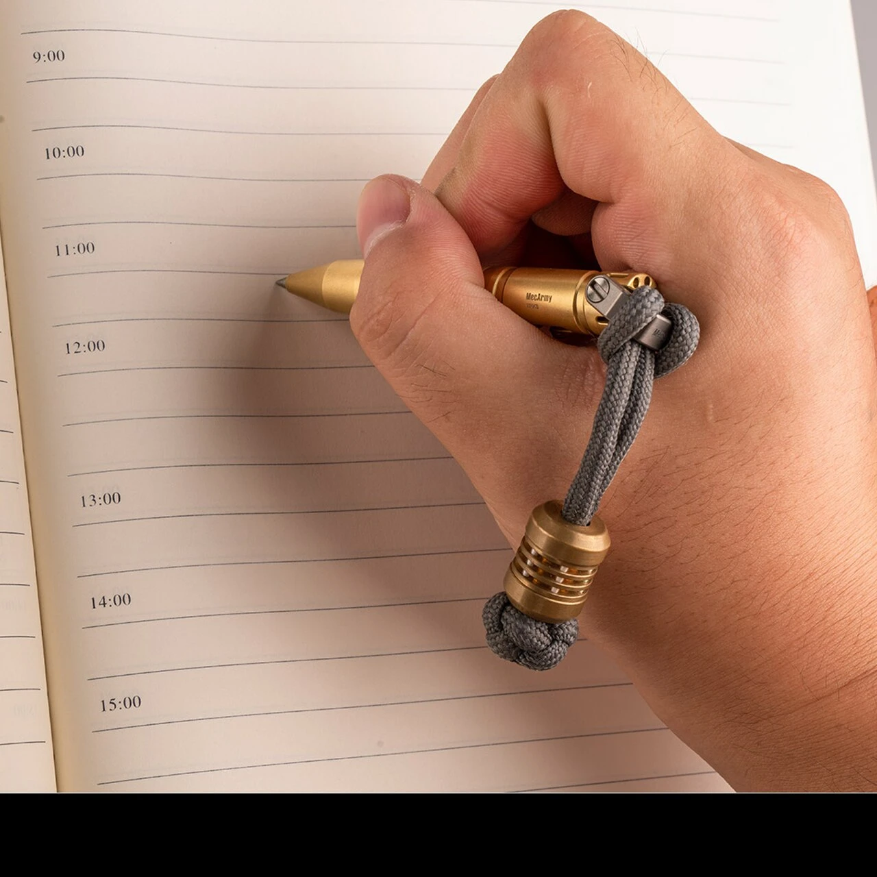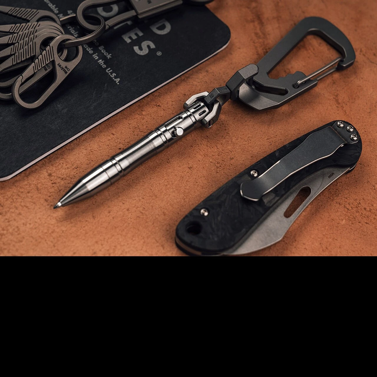 Looking a bit like a cross between a Cyber Man and a sonic screwdriver the Mecarmy TPX8 pen is nothing short of an EDC miracle! Available in either Brass or Titanium it features a removable Mecarmy D-shape key ring that means it will attach to anything or nothing! It is supplied with a Lamy M22 waterproof refill which is engaged via a bolt action making it a joy to use.