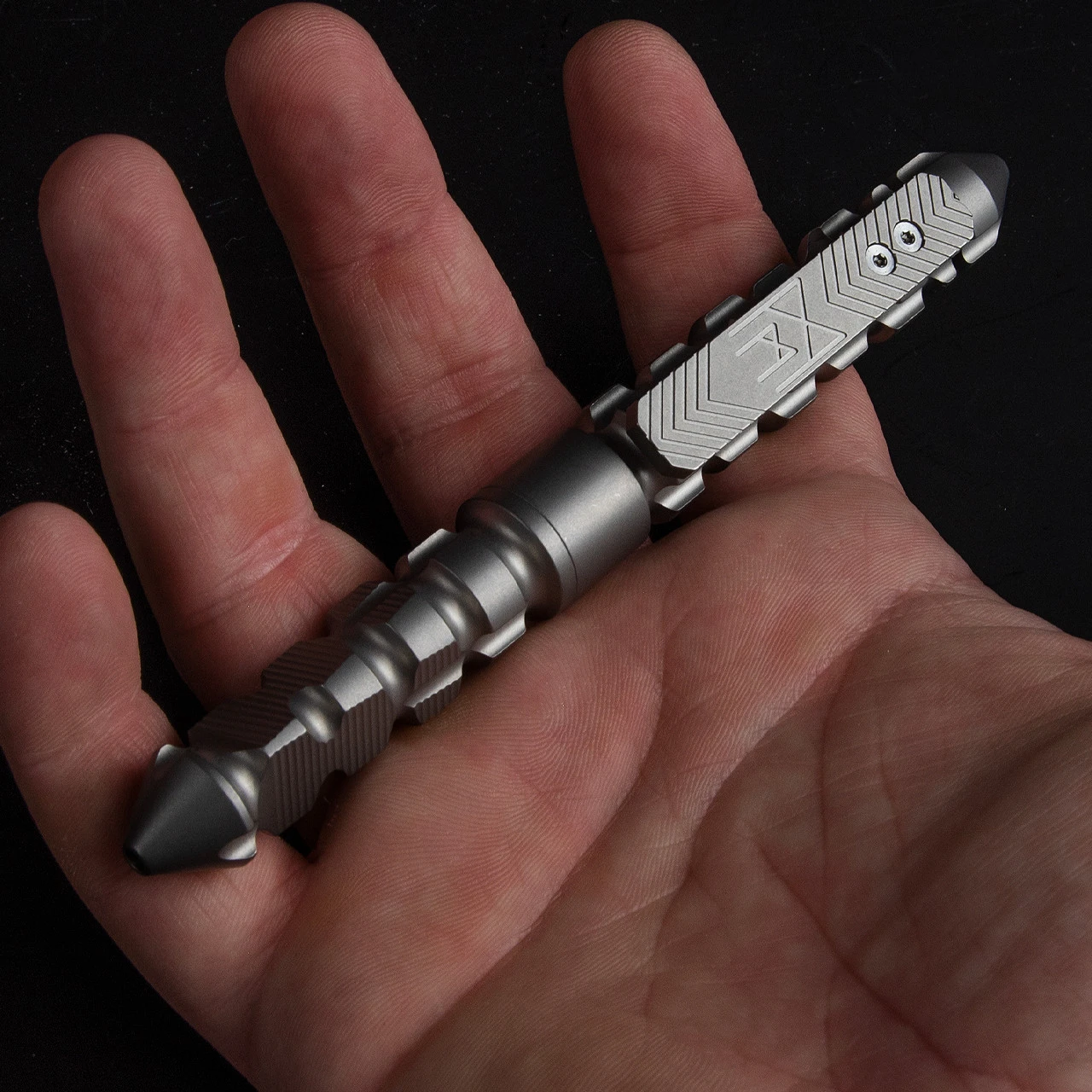 The Midgards-Messer Fat Boy Pen is an extraordinary piece of engineering. Part pen, part Dr Who tool it features a bolt action opening mechanism incorporated into the pocket clip and a glass breaker at the non-writing end. It is supplied with a Schmidt refill but will also take a Fisher Space Pen refill.