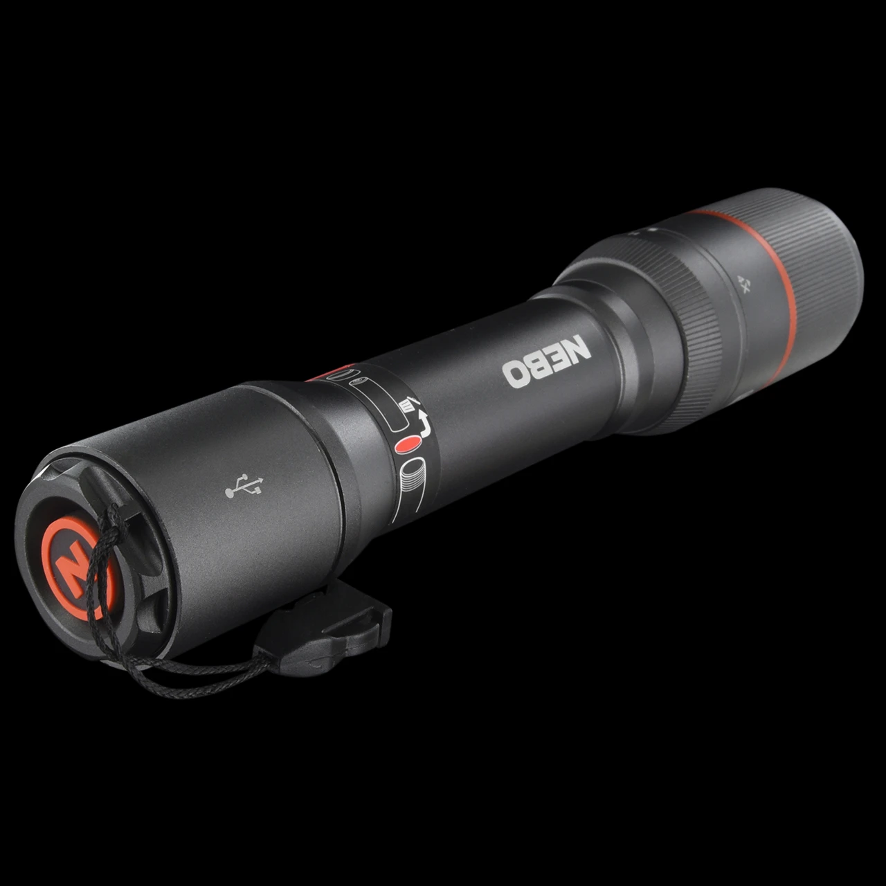 The Nebo Davinci 2,000 lumen rechargeable flashlight by NEBO is a powerful handheld flashlight with four light modes and an included power bank for charging your smart devices.