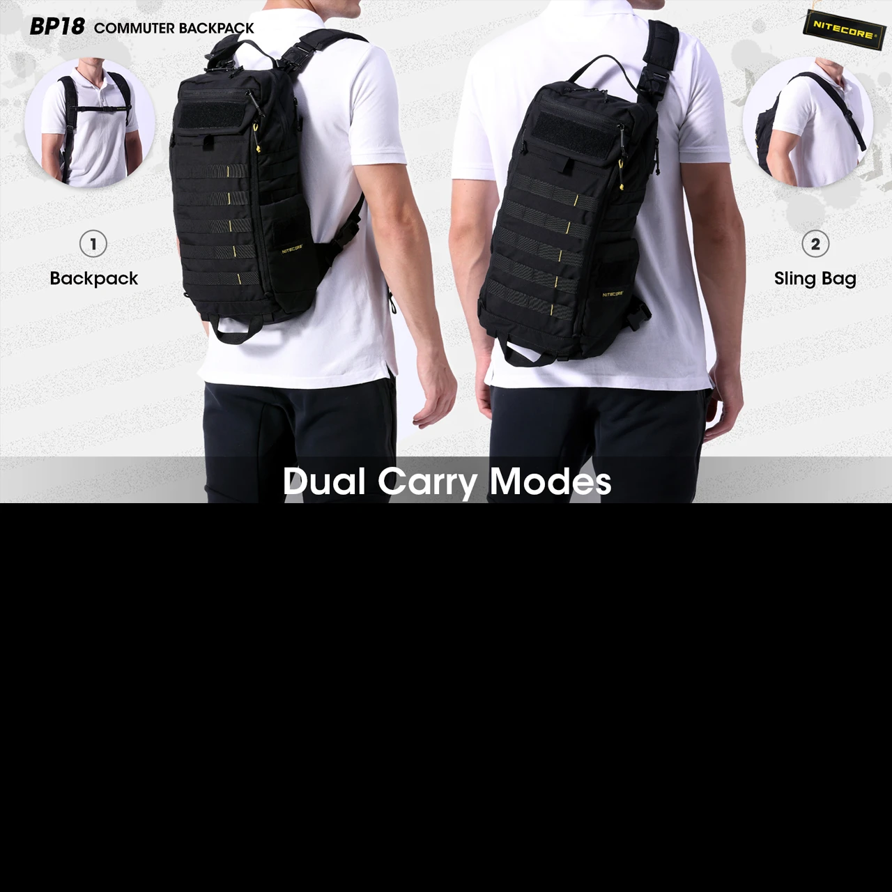 The BP18 offers dual carry modes so it can be worn either as a backpack or a sling bag across one shoulder. The lightweight bag is made from black 500D nylon which is resistant to dirt and water.Â