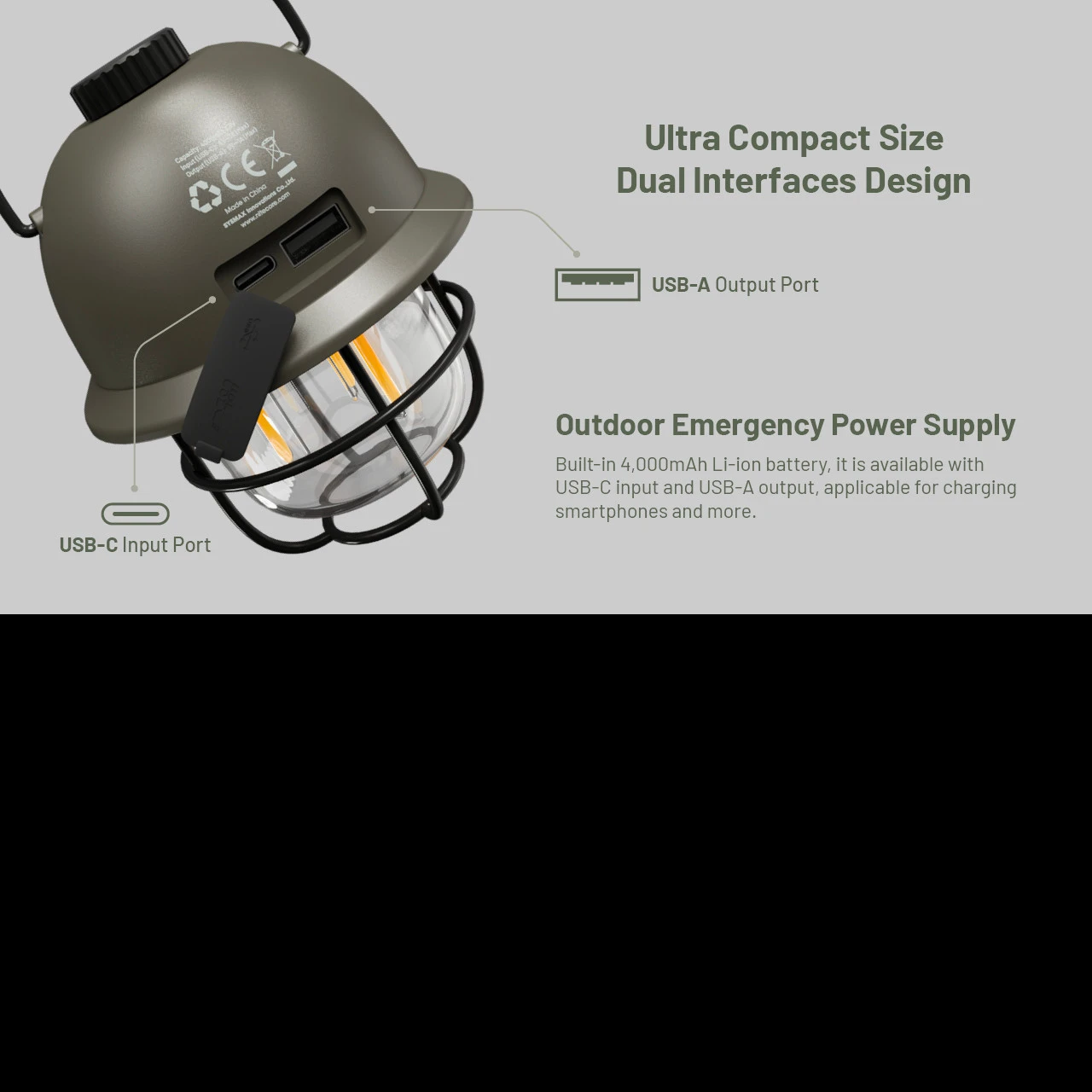 The Nitecore LR40 camping lantern has a maximum output of 100 lumens and is powered by a built-in 4,000mAh li-ion battery which is rechargeable by USB-C.