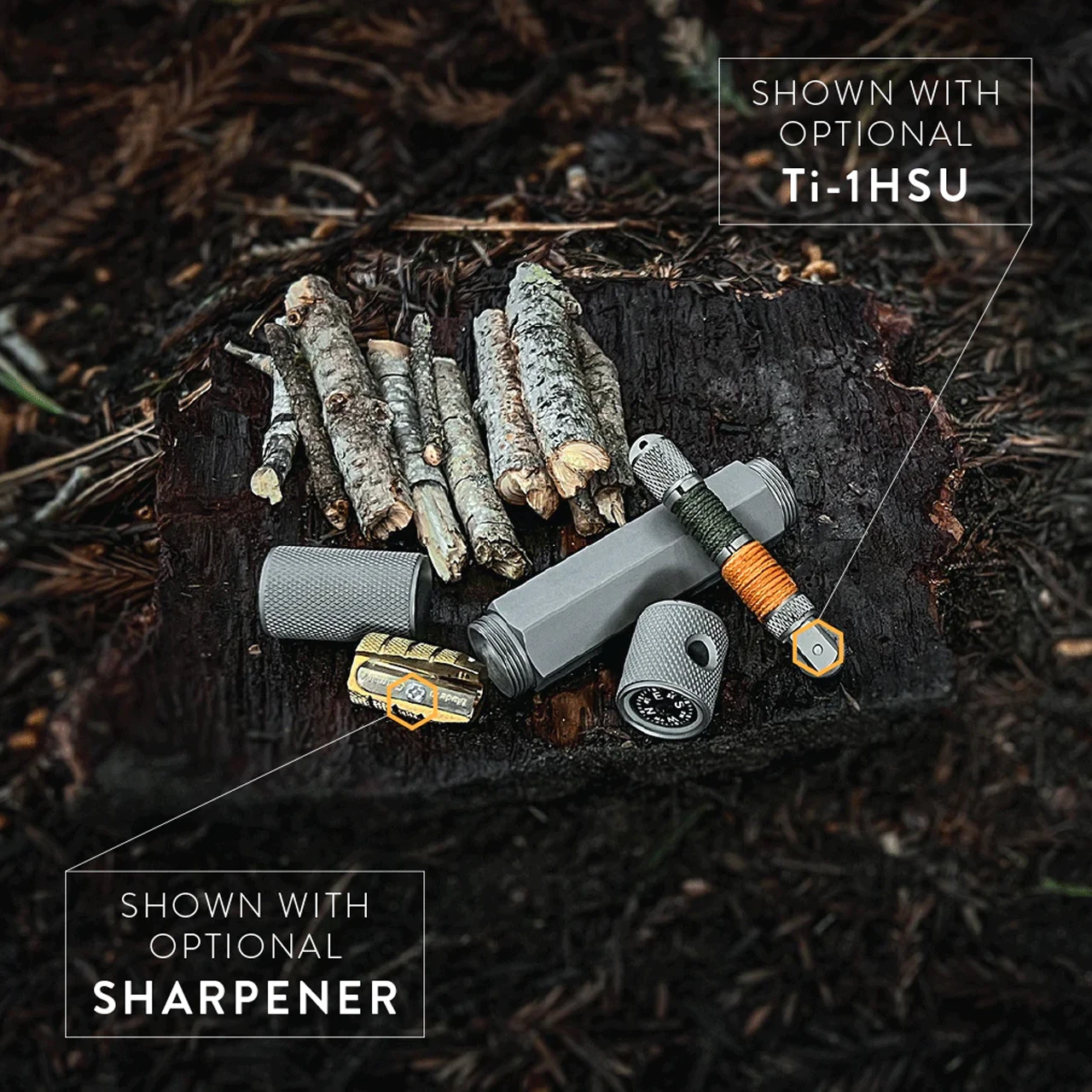 The core intent of the Ti-FST is to provide a useful device that can confidently cover two of your core wilderness survival needs. In addition to the ability of reliably making a fire, the other is navigation. Each of these stash tubes comes with a built-in, oil filled waterproof button compass.