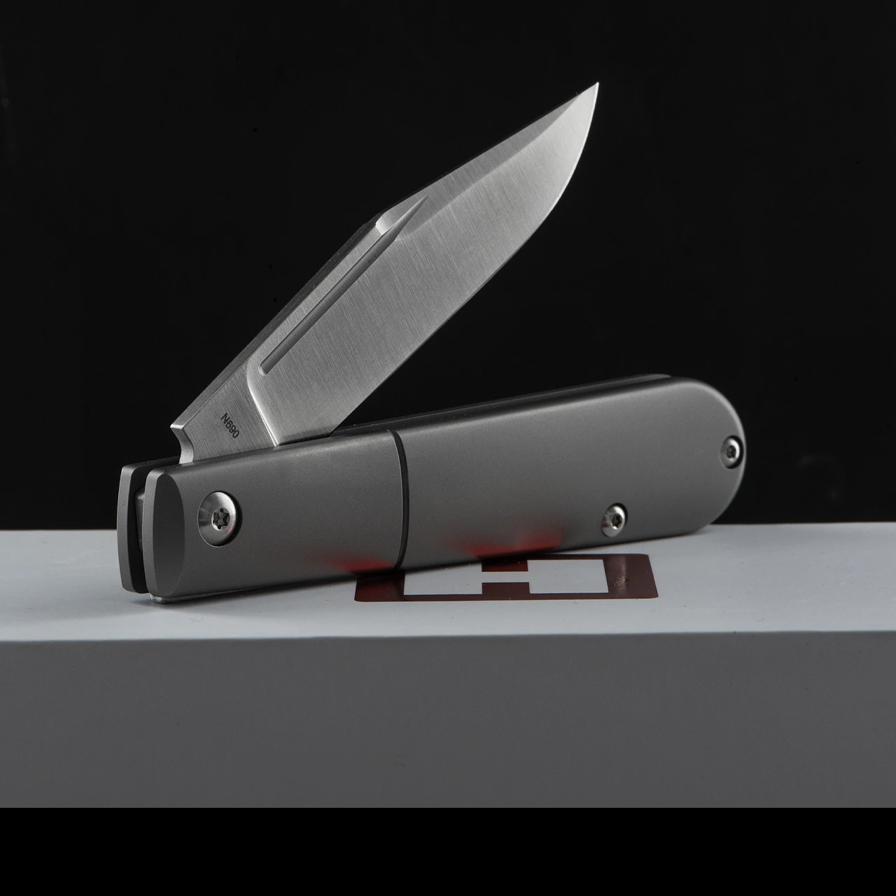 These beautiful folders (this version has a clip point blade) use N690 stainless steel combine with an extremely tactile Titanium handle with a lanyard bar incorporated into the end of the back spine. The blade has a three quarter stop when going into the open and closed position to prevent closing on the fingers. The blade also features the Heinnie® ‘H’ and its very own serial number (sorry we can’t choose a specific number for individual customers).