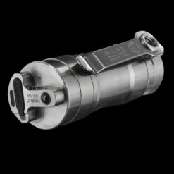 The RovyVon Angel Eyes E700U uses seven LEDs: four CREE XP-G3 LEDs on the front with a combined maximum output of 2800 lumens, and three UV-C LEDs on the side with a combined power of 18mW. The UV-C LEDs emit 270nm light which has been demonstrated to have a germicidal effect on common bacteria. The effective working distance is 10 – 15cm applied for ten minutes. The UV-C LEDs are protected by a quartz window so take precautions to avoid breakage. The E700U comes with a powerful 21700 Li-ion battery with a capacity of 5000mAh and a USB-C connector with quick-charge capability. For increased versatility, the E700U can function as a power bank to recharge other USB-C devices.