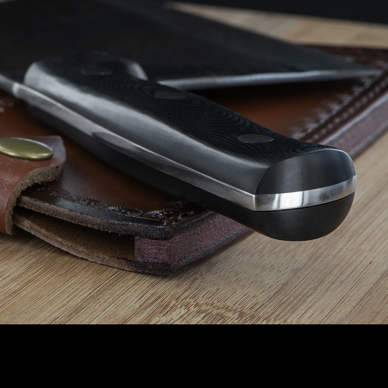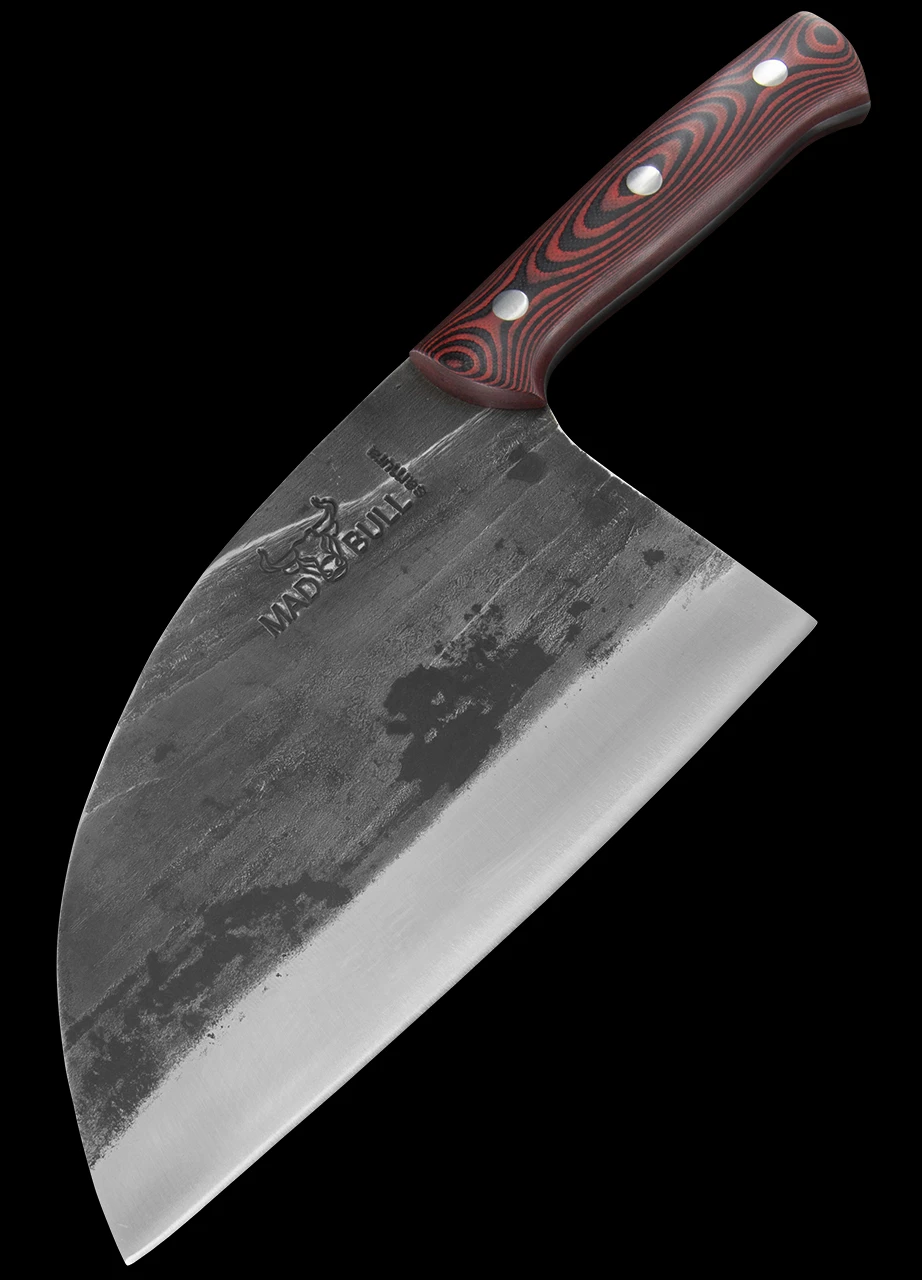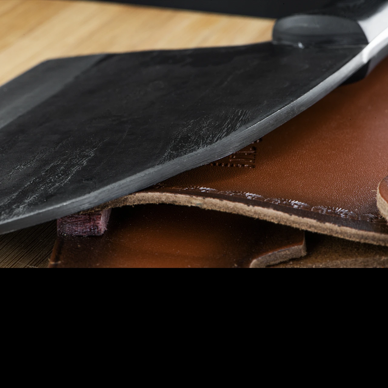 It’s a powerful cleaver with a razor-sharp (it really is unbelievably sharp) blade and convex profile shape.