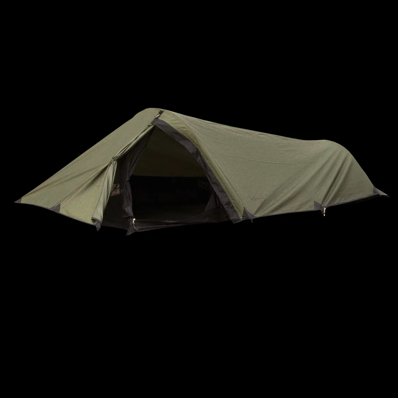 The Snugpak® Ionosphere™ is an extremely small, compact one-person tent. With a two-pole, easy to pitch design, the tent forms a hooped shelter that keeps condensation build-up to a minimum. The inner tent is made of a No-See-Um Mesh Mosquito Net to not only keep out bugs, snakes, etc. but it can also be used without the fly as a stand-alone mosquito shelter/barrier in the summer months and warmer climates.
