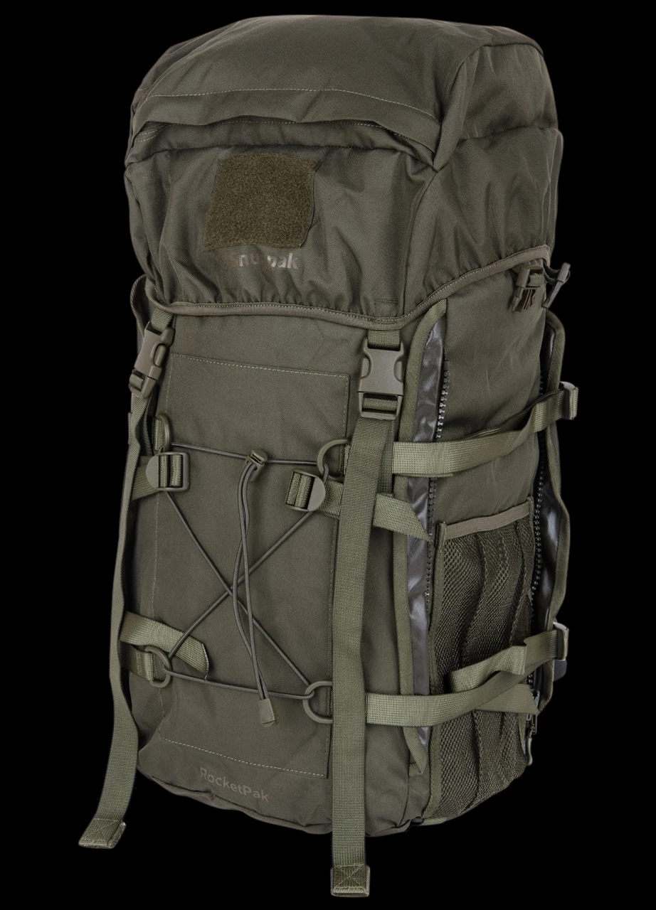 The Rocketpak WGTE is a serious rucksack for serious hikers, trekkers and military personnel. Designed primarily for versatility, this rucksack offers three size options: a full 70 litre capacity version; a 40 litre option created by removing the two 15 litre rocket pouches, leaving the 40 litre central compartment.