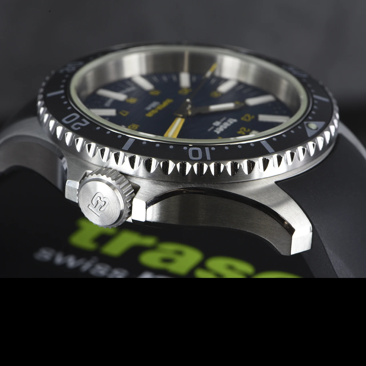 Adding a highlight to the Active Lifestyle collecton, Traser introduces the Traser H3 P67 Super Sub Black Rubber. Giving explorers of the future the opportunity to wear a touch of nostalgia on their wrist. Individual and refined by day, thrilling and bright by night.