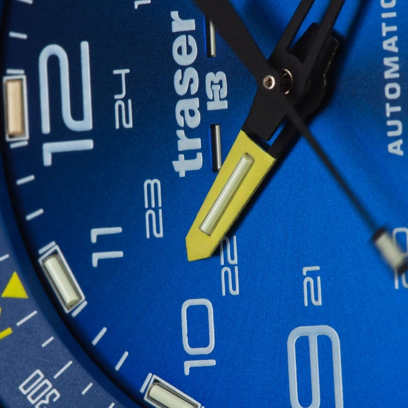 For the selfdetermined and self-confident who transform their ordinary days into an adventure. For those who do not need directions but unflinchingly pursue their own path. Breathtakingly beautiful, unique, with a strong character and reliable. If the sun has already set, this clock brings light into the darkness: Thanks to the in-house developed trigalight self-powered illumination technology, the hands and hour indices of the traser watch glow even in complete darkness.