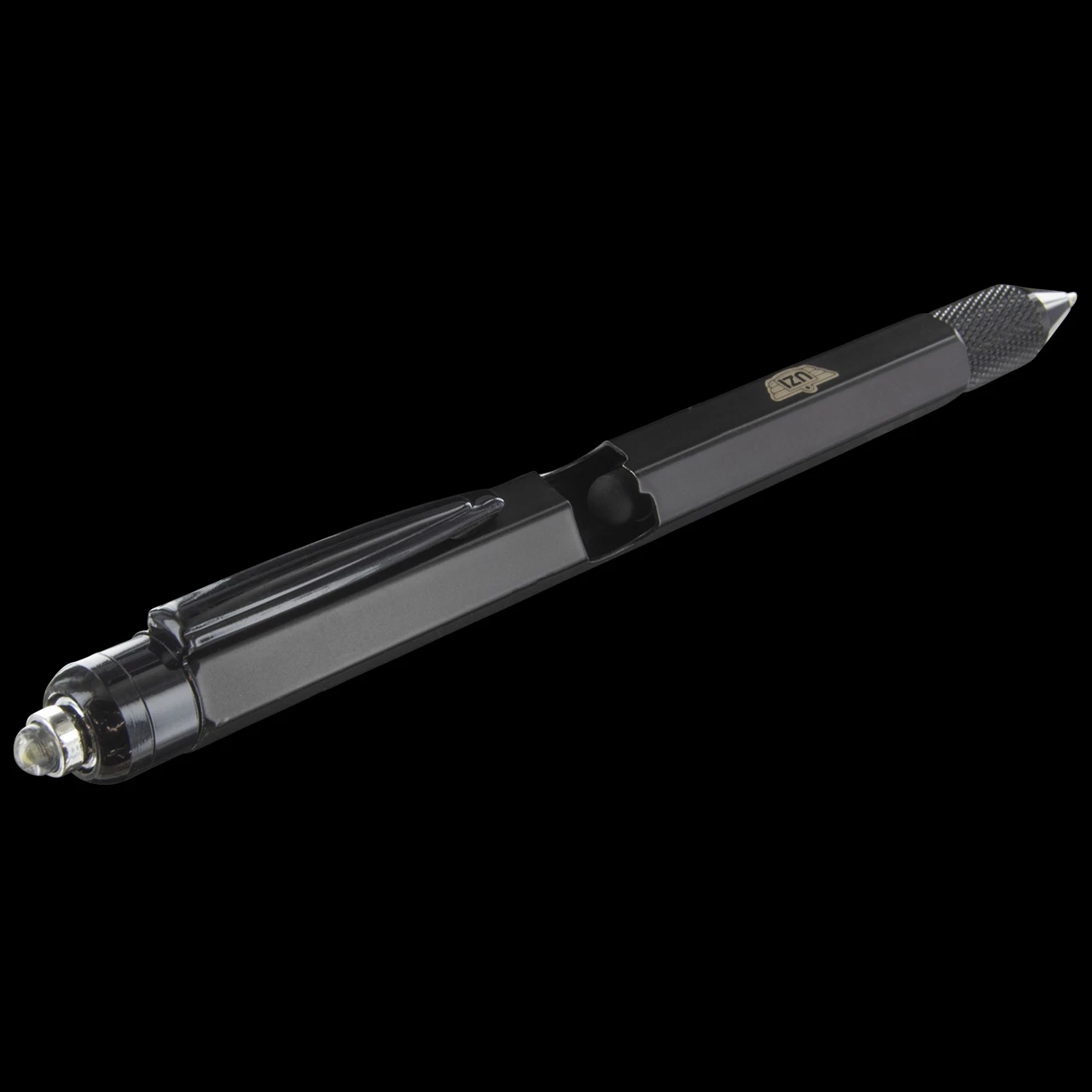 The Uzi Tactical Utility Pen does pretty much everything. It will even make you a cup of tea…not really! But it WILL do the following; a pen, a screwdriver, tablet stylus, an imperial and decimal ruler, a phone holder, a spirit level, an LED light and a ballpoint tactical pen that becomes tactical tool in-case of emergency made of lightweight aircraft aluminium.Â