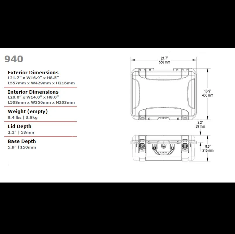 - Internal Dimensions: