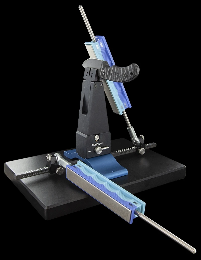 The included WE130 Precision Knife Sharpener, utilizes their patented Generation 3 Cam-Lock Vise. This vise is ideal for accommodating a wide variety of knife grinds, including fully flat and hollow ground blades. The Split Jaw Design of the vise allows the jaws to flex so they can firmly grasp distally tapered blades, like many everyday-carry pocket knives and kitchen knives. It offers an expansive range of sharpening angles, allowing you to sharpen a wide assortment of blades, from 13 to 35 degrees per side. Blades with wider angles, such as daggers, cleavers, bushcraft knives and blades with chisel grinds, are all possible on this sharpener, as well as blades with low angles, like many Japanese knives and many knives made from modern super steels.